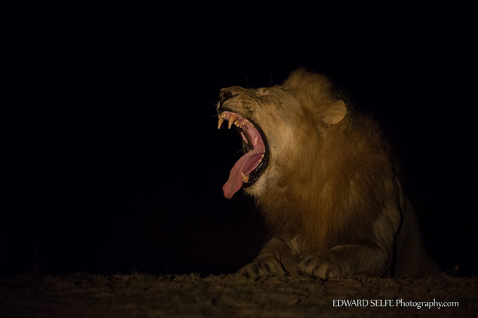 Nearby, a lion called, which was an exciting addition to our evening. With the help of the spotlight, we found him, his brother and all the females.