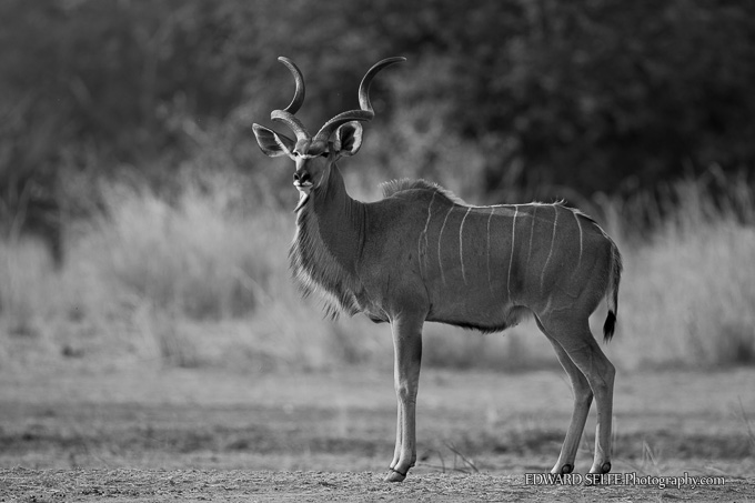 Our first day at Lion Camp has been excellent, as the area around Lion Camp always is. We started out at 3pm, knowing it would be hot but so that we would be in position to photograph when the light was better. We found a trio of Kudu bulls who took some time to settle as we approached but eventually gave us lots of good chances.