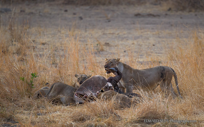 We returned to the site of the lion vs crocodile situation in the morning, and found that the lions were still feeding.