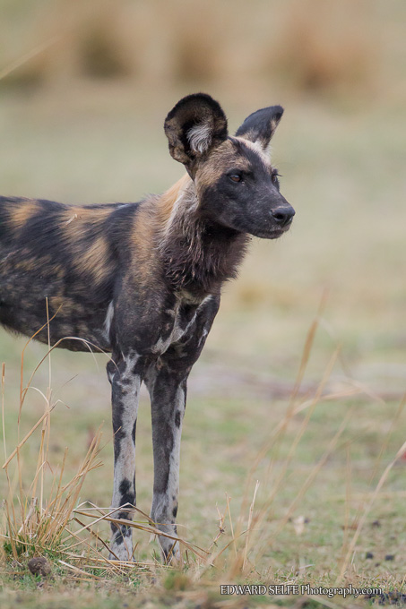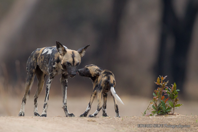 Not long after this, commotion nearby led us to a pack of Wild Dogs which one of my guests had seen in the morning. What he hadn’t mentioned was that the pack of 4 adults now had 2 puppies with them! I had never seen Wild Dog pups so was very excited, and almost forgot to take photos as I was enjoying the view. The light was really poor by now (ISO 3200 and upwards) so we took photos as best we could and then enjoyed watching the interaction.