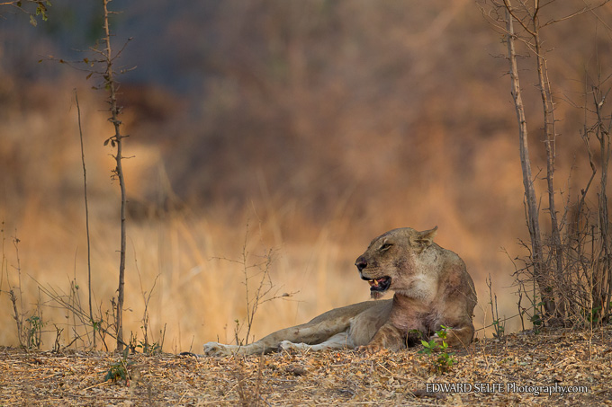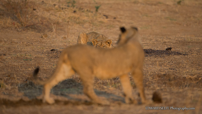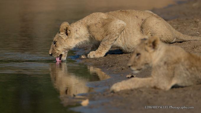 We then went in search of the lions and quickly found all the cubs lying along the river edge. One got up to drink, while the rest remained pancake-lions!