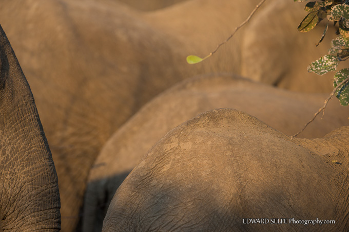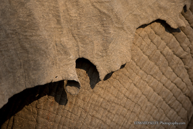 Knowing that game would be coming to drink in the late evening, we moved on to Lunga lagoon, a large (but mostly dry) lagoon north of Zikomo. We found elephants on the way there who were too close for my lens, so I tried some abstract shots in the soft light.