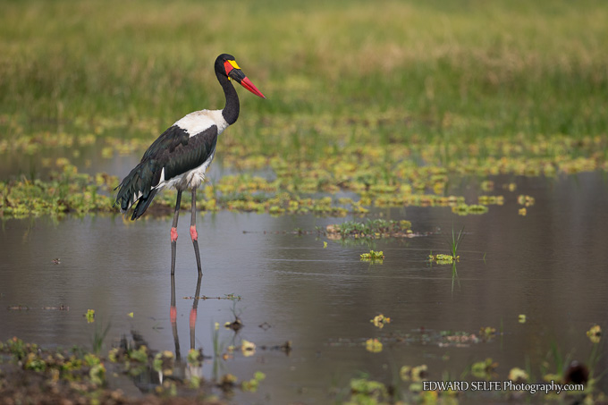 A nearby Saddle-billed Stork gave us more opportunities with a green background to help with offsetting the red and yellow of its bill.