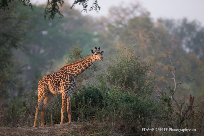 The following morning, we were first out of camp and enjoyed the pink morning light on this giraffe.