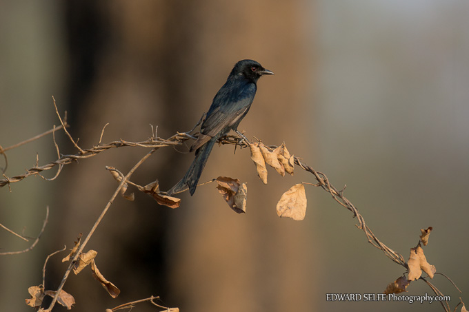 A Fork-tailed Drongo was waiting nearby, swooping down to snatch insects disturbed by the huge animal.