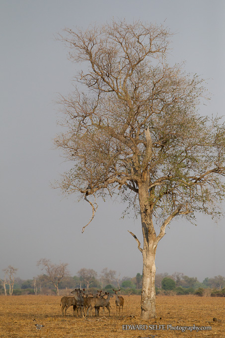 Arriving at Zikomo Safaris, in the Nsefu Sector of the South Luangwa, we were treated to high tea, before our afternoon safari. We left when it was still hot, in search of game in the dry lagoon system just behind the camp. We took a lot of time trying to track down a herd of Eland, but they were accompanied by a very shy bull who kept running whenever we came into view, taking the herd with him, so we soon gave up on that plan.
