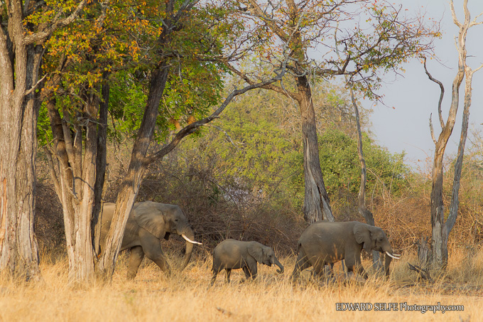 Leaving the lions, I saw a herd of elephants crossing a plain so we drove around to get the light on the correct side and waited as they came into view. Passing through the trees, we took some nice shots.