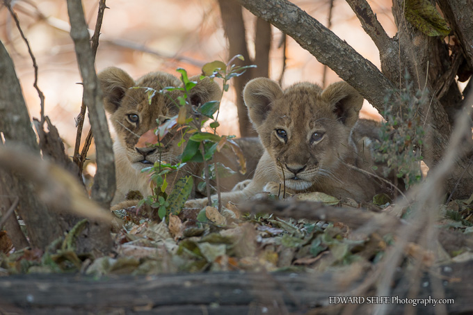 Returning to the site of the kill, we spotted a female in the bush and she had her little cubs with her! We approached very carefully and took some shots of the 2 month old cubs while their mother lay quietly nearby.