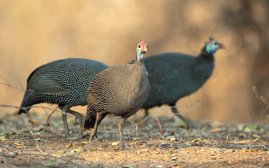 After losing her into a very thick tree, we spent the rest of the morning with beautiful light on guinea-fowl, elephants and a trio of waterbuck that lined up very nicely for us! We didn’t take so many photos that morning since the sightings were a little thin after we left the leopard and her calls. But that is part of the natural cycle of safari and I have learned that when sightings are slow, it’s best to take time and watch the things that you might not normally stop to photograph. Have you ever watched how busy red-billed queleas are when they’re feeding on the ground? Or tracked a little sparrow hawk through the trees using the tell-tale calls of enraged squirrels and little birds? Taking time to stop and absorb the surroundings is as much a part of my safaris as the pursuit of sharp, well-composed images of the headline species.