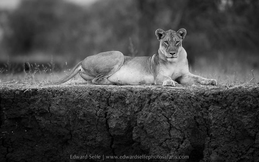 That afternoon gave us our first really wonderful Lion Camp lion sighting. The Hollywood pride – who we’d seen a couple of times in previous days but not in a good location for photos – were resting along the banks of the Luangwa. The light was perfect so we settled in for an afternoon of lion activity. There is something about the lions, the light and the surroundings at Lion Camp that gives images from there a very special effect. I really wanted to fill our cameras with great shots and it turned out that this was exactly what we got!
