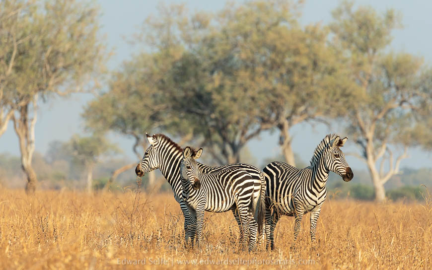 Heading out early – Lion Camp always offer a very light breakfast which enables an early departure from camp – we followed up on a group of young male lions which we had heard calling in the night. They were hunting buffalo which was amazing to watch! They were in the distance and we couldn’t get close to them, but we waited hoping that the chase might bring them closer. Sadly one of the males rushed in too early and scattered the herd, spoiling their chances! We settled for using the magical early morning light to photograph zebras among the beautiful leadwood forests along the margin of Lion Plain.