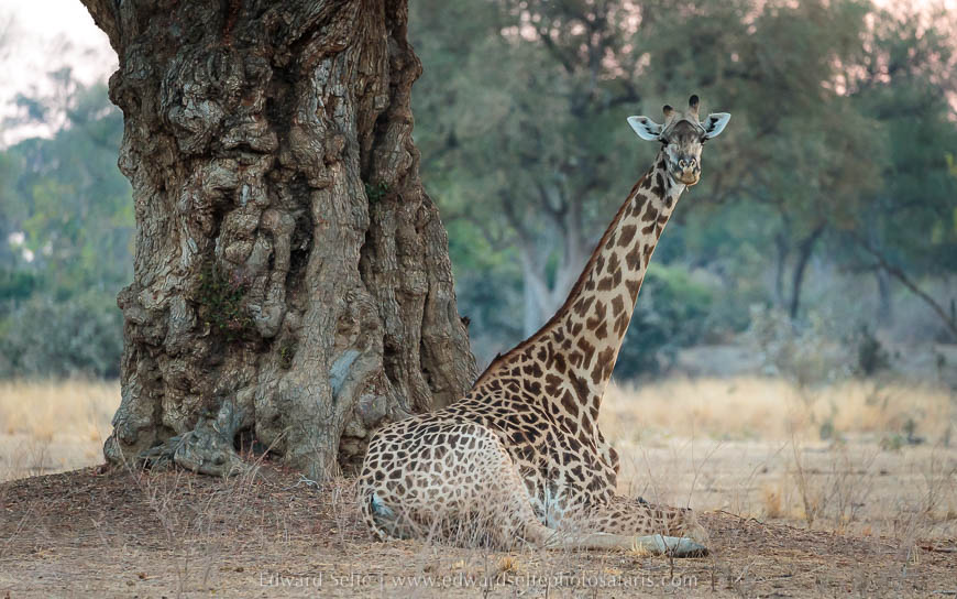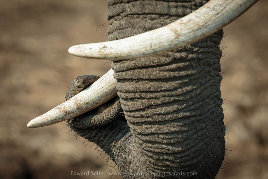 The camp staff were great and arranged an early breakfast for us so that we could begin our morning safari long before sunrise. We enjoyed a female giraffe sitting under a tamarind tree, a beautiful juxtaposition of textures, and then headed to the elephant crossing point to wait on the many herds that would surely come. My guests got wonderful shots of two herds crossing against the stunning backdrop. I had been many times to that crossing so set my self the target of only using my longest focal length and only using it in portrait orientation! Sometimes, setting small challenges like this forces new ingenuity into your composition!