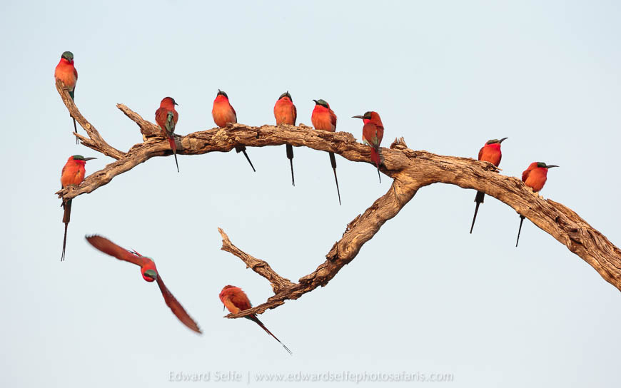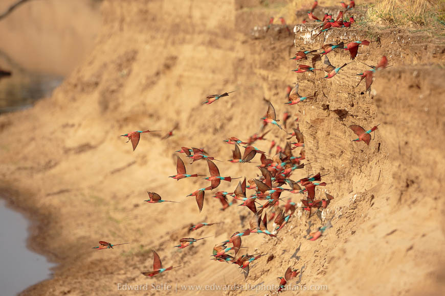 Our last morning at Lion Camp took us to a carmine bee-eater colony where we worked on a variety of techniques including prefocusing and waiting for the birds to lift off from the river bank. This is a particularly beautiful section of bank so this technique worked well.