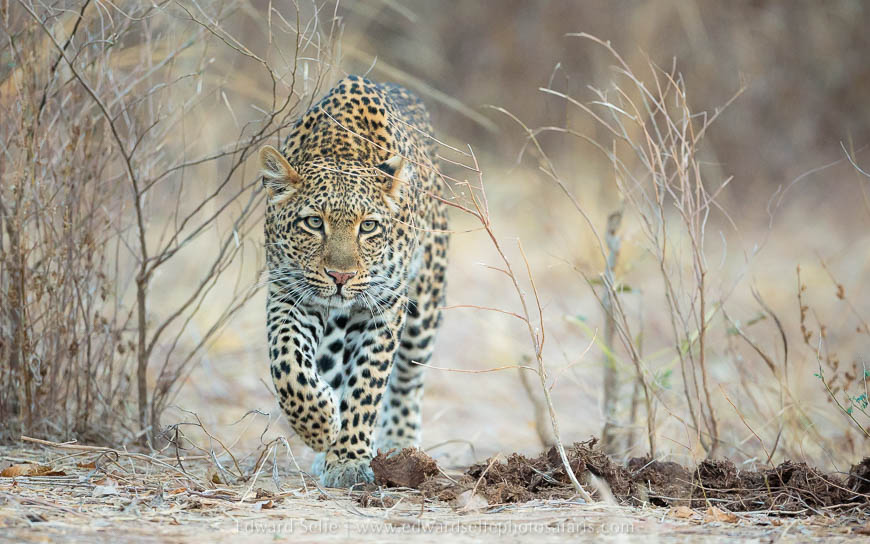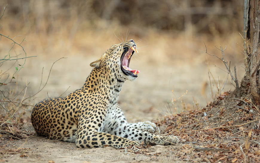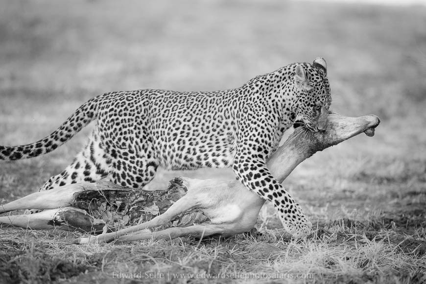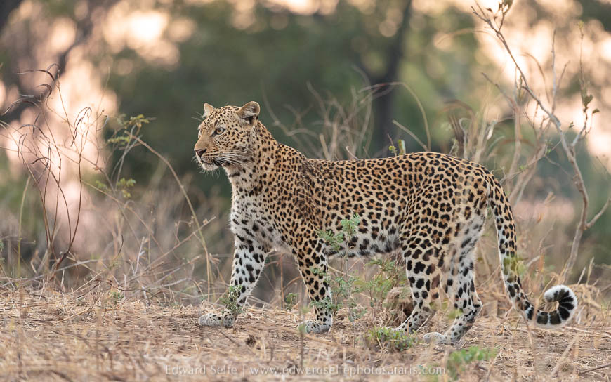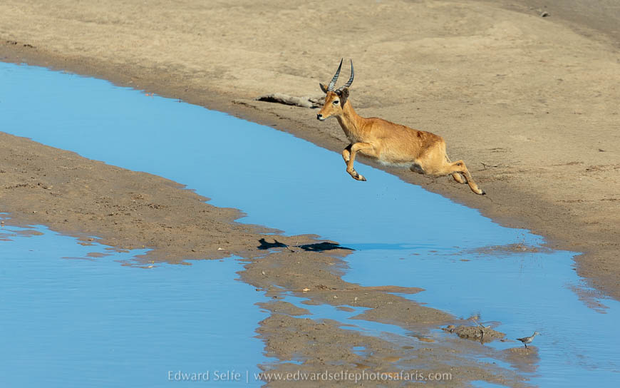We had time for a short morning safari on our last day, so we headed out with the intention of checking on Olimba who had dragged the carcass into a tree later in the evening (reported by one of the other guides at Nsefu). However, as before, we didn’t get far as I located the mating pair of leopards again as we left camp! Once again, the male gave us only a brief viewing before rushing off, but we spent an hour with the female as she called, marked territory and followed the male. As she arrived at the river, she spooked some puku who stood tall and whistled their displeasure. It was fitting that a long Luangwa safari should start with a lion kill on the first evening and end with an hour’s leopard sighting on the final morning. Entirely satisfied, we returned to camp to pack up and head home.