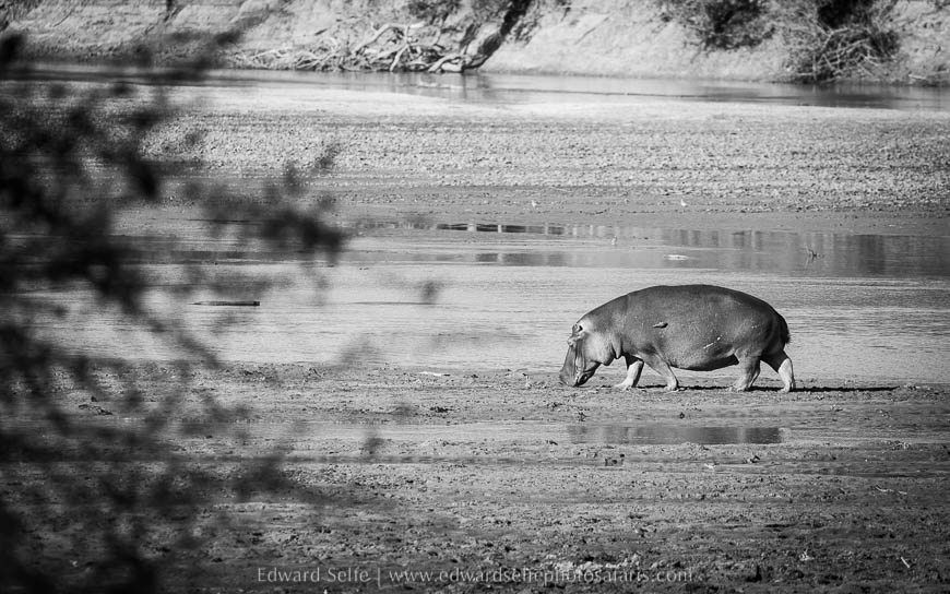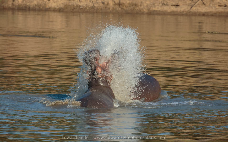 We had used much of the best time that morning tracking the mating pair, so we decided not to search for Olimba at that stage, but to move to the river and check out the sounds of two hippos battling in the water. I think we missed the best of the action, but we saw some displaying and splashing before one of the hippos emerged from the water and moved off. Space in the river is at a premium at this time of the year and hippos often compete for the remaining deep water.