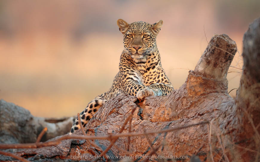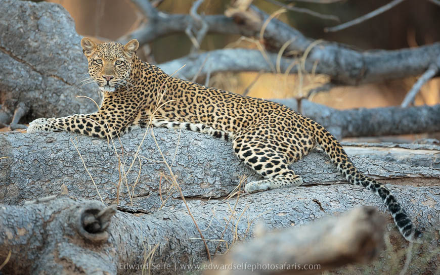 We settled in and prepared for our first afternoon safari. I made no secret of it; on our first afternoon I was going to look for Olimba, the well-known leopard of that area. We had been enjoying great lion sightings in the Nsefu Sector, but leopards had so far eluded us. Well, it didn’t take long. Barely an hour out of camp, we found her emerging from the gully where I have so often watched her hunting, and walking to a fallen tree where she lay in full view. Needless to say, we were thrilled that Nsefu Camp had already delivered the goods! We took traditional side-on shots and then I manoeuvred to get an alternate view from the front. I could see that the light was going to appear below the clouds so I took a chance that it might hit her through the trees… I was right and we all took some spectacular shots. She rarely lies out in the open so this was a particularly special encounter.