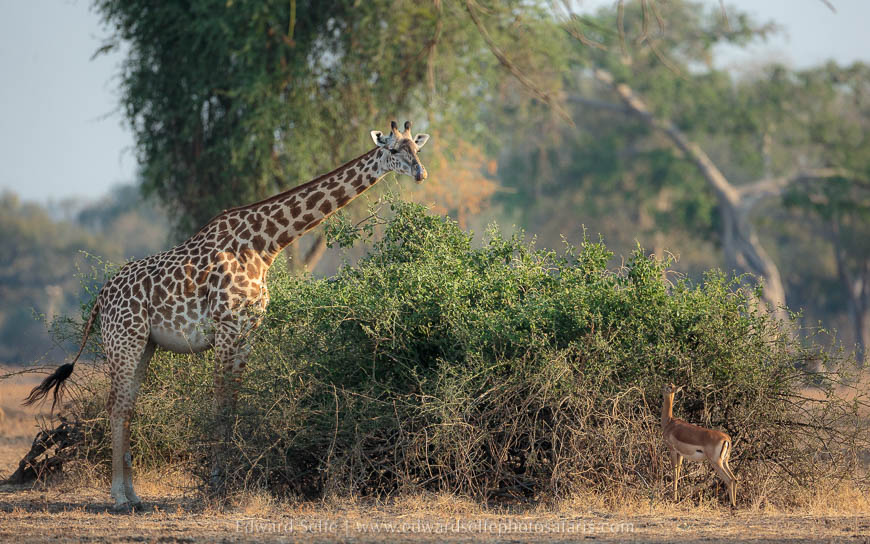 During the following couple of days, we worked on techniques and I assisted with advice and ideas, continually re-positioning the vehicle to get the best angles. We enjoyed time with impalas, carmine bee-eaters, a leopard and her cub and giraffes along the river bank.