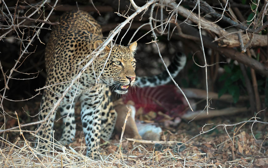 Our final full day was spent entirely in the company of Olimba. We found her early in the morning with a freshly killed impala under a bush.