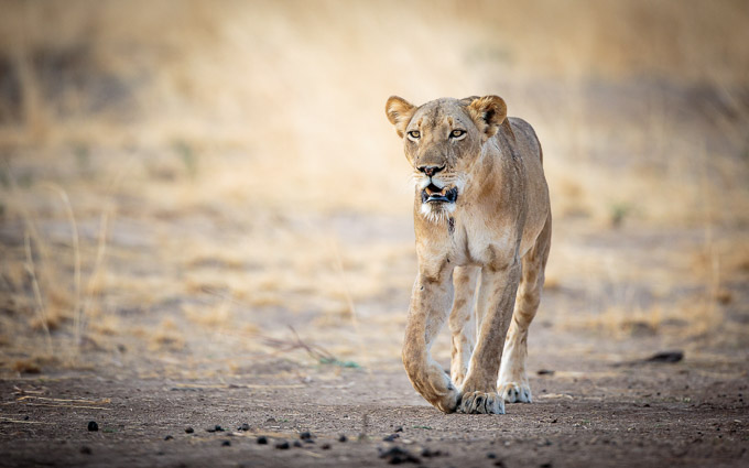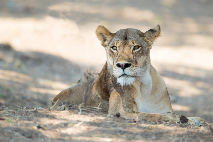 We spotted some lions across the river in the morning, when it was already too late to cross and photograph them. But we decided to head that way in the afternoon and it gave us some of the best shots of the trip. As we got close to where they had been resting, they were approaching us down the river bank, outlined in golden light.