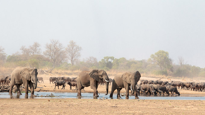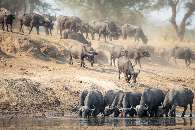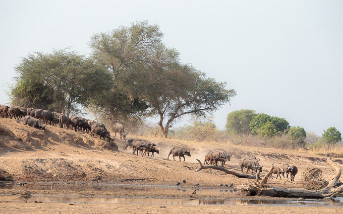 Eventually the buffaloes came down and gave us the best sighting of the week. 500+ head of buffalo thronging around the remaining water, with all the accompanying dust and noise, was truly memorable.