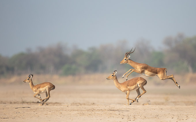 And while waiting for a huge herd of buffalo to come and drink, we practiced panning shots of impalas on the run.