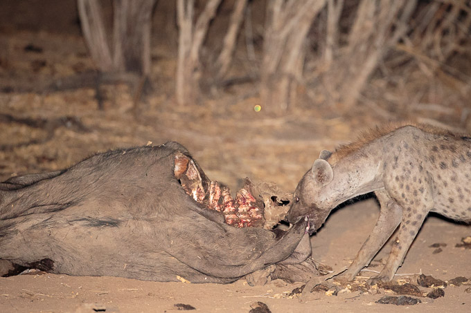 On the way back from that area in the evening, we found a dead buffalo with several hyaenas feeding on it…..