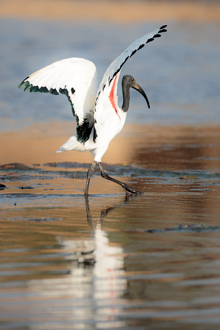 Returning to the river to photograph some hippos, we spotted a Sacred Ibis doing some yoga, and spent time watching it. I had a chance to discuss camera settings with my guests and get to know their level of camera knowledge so that I could tailor my suggestions to each of them. I therefore didn’t take many photos of the ibis, but I was glad to get one which shows the red underwing patch that becomes more prominent as the rainy season approaches.