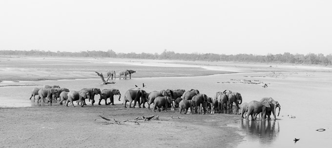 The afternoon gave us a serious dilemma; stay with an amazing group of 50 elephants that we found at the river crossing near camp…..