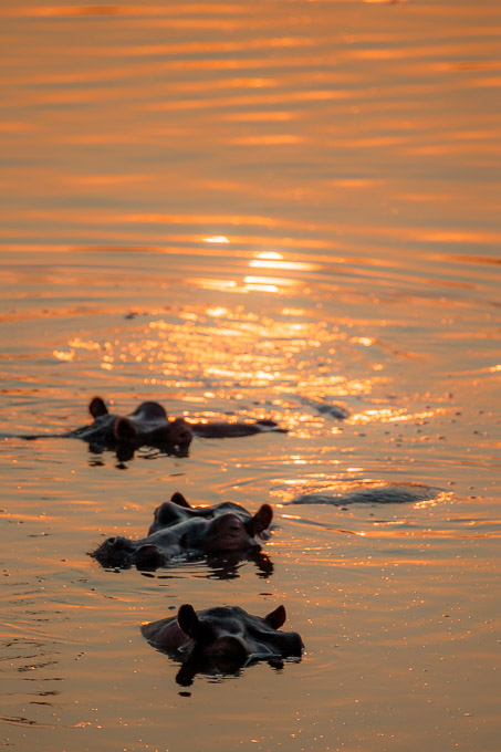 ….and these hippos silhouetted against the golden water.