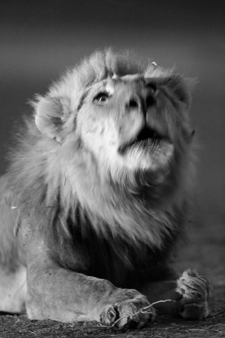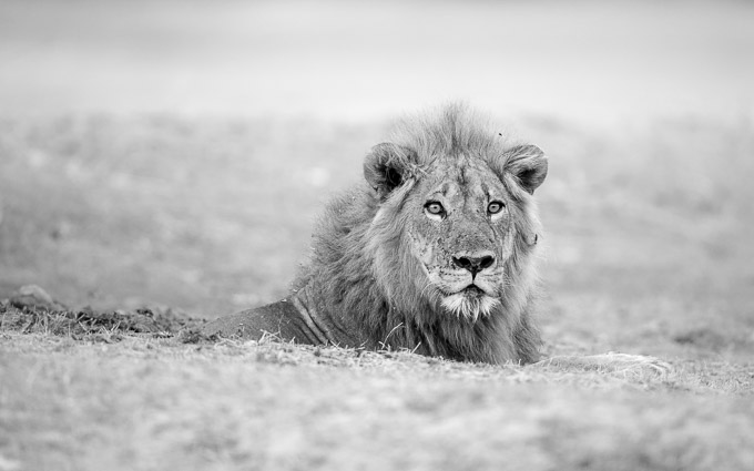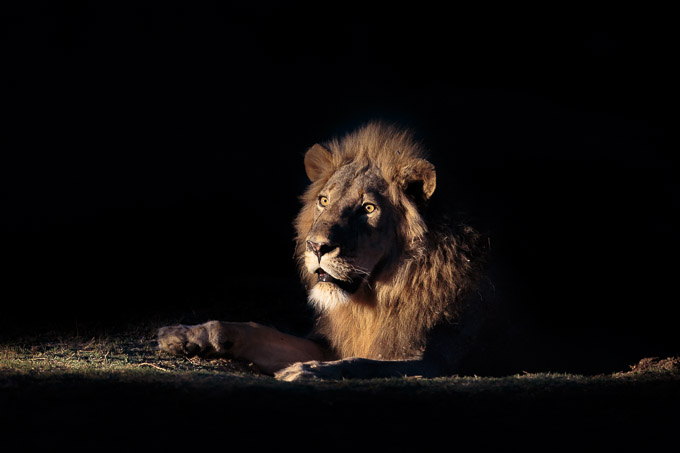 And then we reached the lions. A male and the female had moved off (perhaps they were mating in which case they would be permanently on the move) but the remaining male gave us outstanding opportunities; he watched us carefully in the low light.