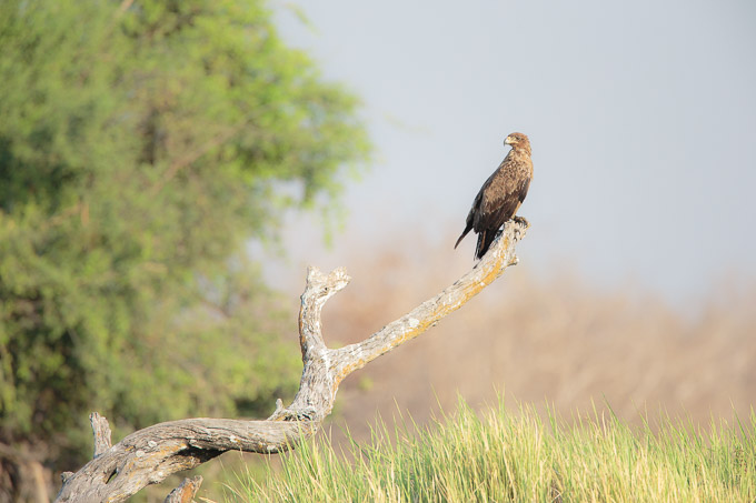 Hearing nothing in the night, we decided to go to the Hot Springs in the centre of the Nsefu area the next morning, hoping to find wild dogs and lions which are sometimes seen there. Sadly, they were elsewhere, but the bird life in the area was outstanding. We enjoyed Tawny eagles……