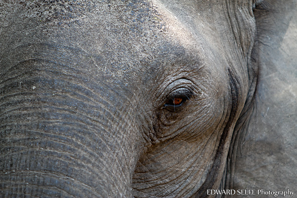 While watching a group of elephants, one female came right up to the vehicle to reach a fallen Winterthorn pod. With long lenses attached, we could only photograph abstract body parts!