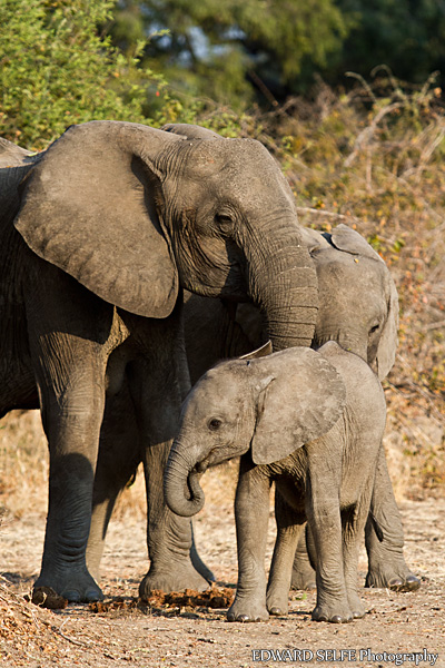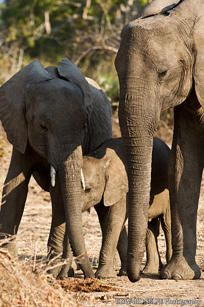 We enjoyed watching this elephant family as they hoovered up Tamarind pods discarded by the baboons in the branches above.