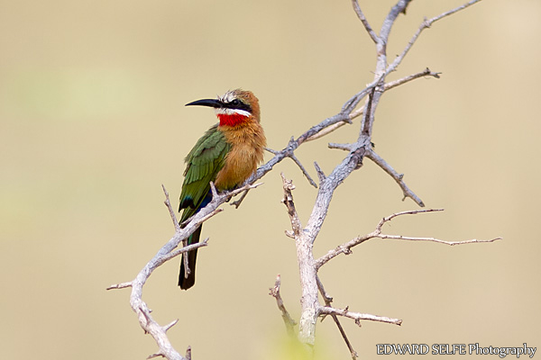 Bee-eaters are always found in large numbers in the Luangwa, with more species arriving just before and during the rains. The most visible of all are these White-fronted Bee-eaters.