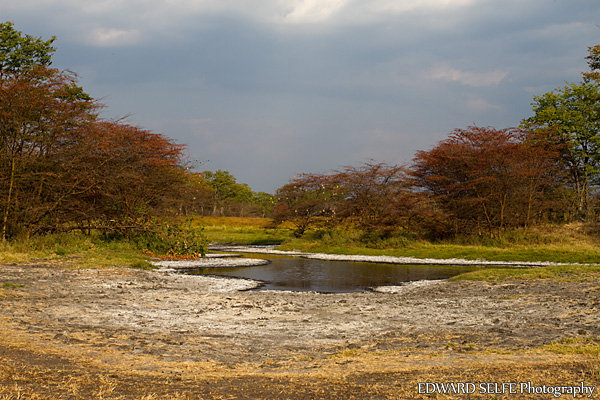 We made an afternoon visit to some local Salt Pans and watched hundreds of Crowned Cranes performing their courtship dance in the distance. Sadly, they flew away before we could even get close, but we spent the time composing landscape shots of the salt pans surrounded by the bright red floodplain acacias.