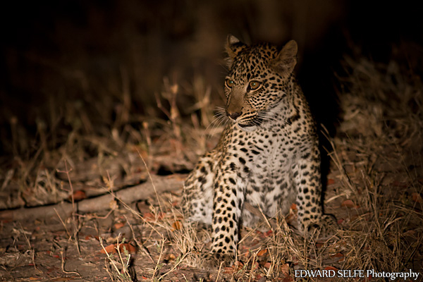 One evening, we heard baboons barking and they led us to a female leopard with her two cubs. I never managed to get a shot of all three of them together, but I took this one of the male cub. He had fed well during the day and didn’t seem too worried about us. He looks very young in this picture, but is actually about 6 months old, and about half the size of his mother.