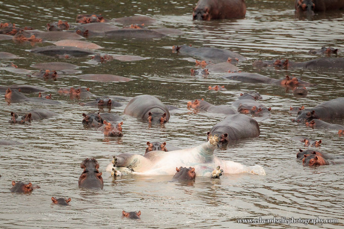 During the week, a hippo died in the middle of the one of the large herds in the river, and began to float upside down. Initially, no one took any notice, but after a while, both hippos and crocs began playing with it, treating it like a large beach ball!