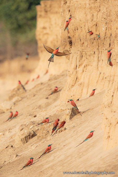 We paid a visit to the seasonal spectacle that is the Carmine bee-eaters colony. We tried all sorts of angles and zoom and in the end, Roger and Vicky took some nice video which seems to be a very good way of capturing the drama.