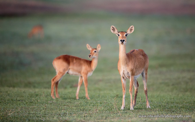 I picked my spot, keeping the Puku ewe as my main subject but allowing the calf to add to the composition and including the distant antelope behind for balance in the frame.