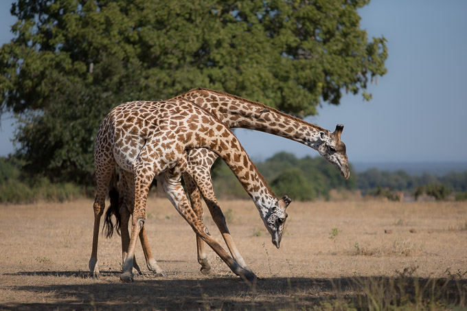 Leaving them, I found a couple of giraffes sparring gently. It seems the cool weather has encouraged these guys to stay active later in the morning, feeding, going for water and practicing their jousting!