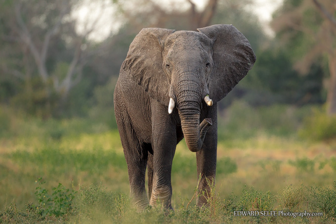 Of course, with elephants it’s their sense of smell which informs most of their decisions and my scent was drifting towards him on the wind. I took some photos and moved off to allow him to feed in peace.