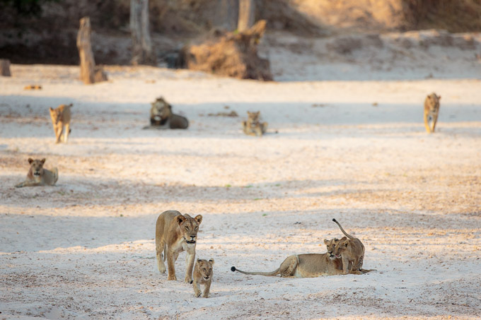 In the end, they all headed to a waterhole and settled down in the shade. It was a treat to see the whole pride approaching us across the sand.