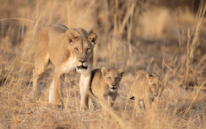 The following morning, we set out to look for a pride of lions we had spotted in the dark the previous evening. We quickly found them by following fresh tracks and enjoyed a good couple of hours with the pride. The small cubs were staying close to mum…..
