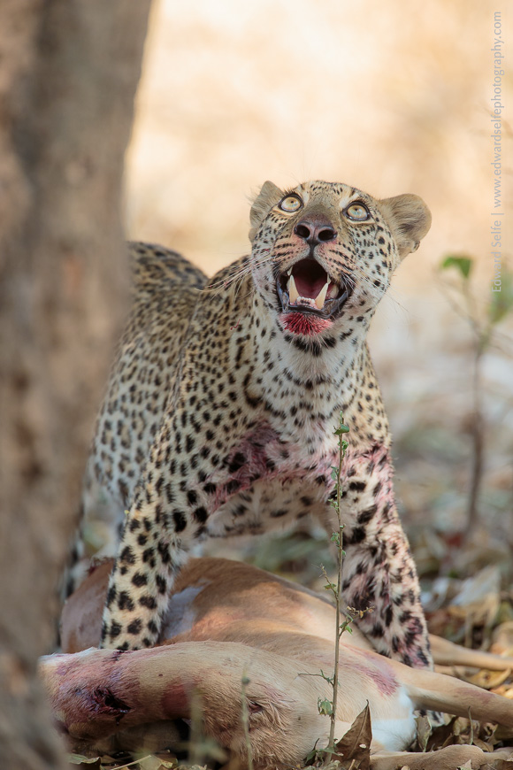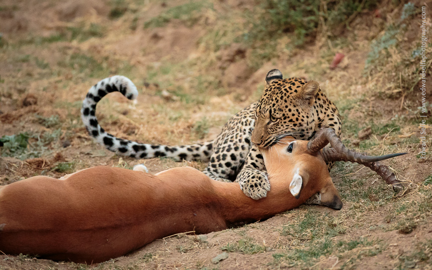 Impala are the most targeted prey for leopards, forming a substantial meal, but crucially one which can be hoisted into a tree to protect it from scavengers. These leopards both lost their meals, one to lions and the second to hyaena, because they were not able to reach the safety of a large tree.