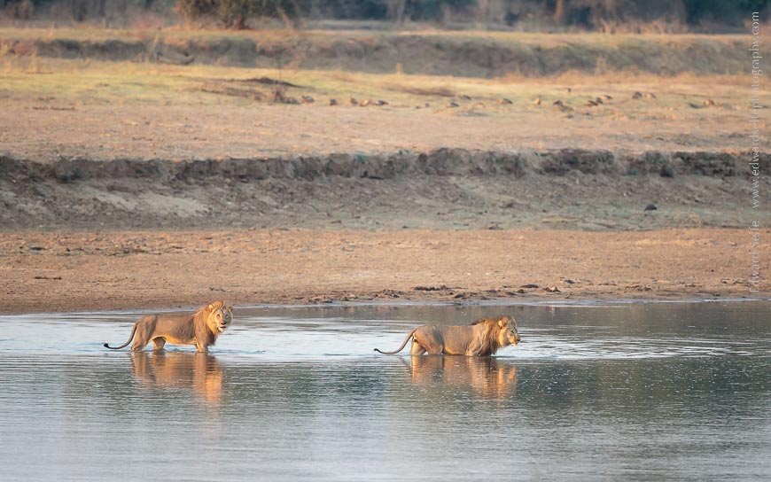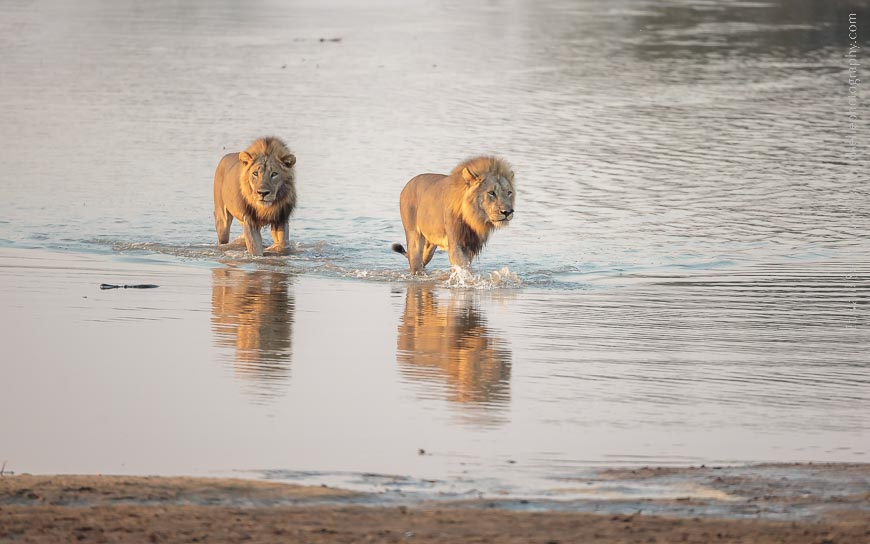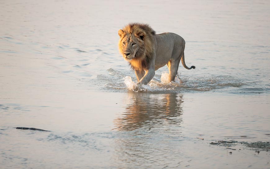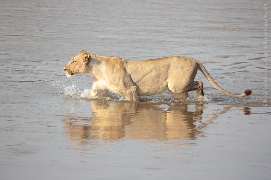 As always, lions growl in fear before crossing the water, hoping to intimidate any crocodiles that are nearby. It’s easy to see that this is a necessary, but not enjoyable, experience for them!